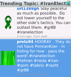Fra le funzioni interessanti ci sono i trending topics ovvero gli argomenti di cui si parla maggiormente, in questo periodo ad esempio non può mancare #IranElections.