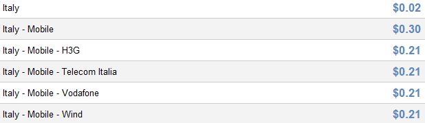 Visto che fino a fine anno è possibile chiamare USA e Canada gratuitamente c’è chi si sta apprestando ad usare la soluzione per un corso full immersion di inglese (malgrado i miei dubbi sulla qualità dell’inglese parlato negli USA), per l’Italia invece le tariffe non sono così sorprendenti.