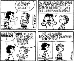 Poi se uno vuol celebrare il grande cocomero per i motivi più disparati ad perché si sente più celtico che cattolico, perché è anticlericale, per motivi squisitamente economici (come nella vignetta a lato) io non è che mi scandalizzo. Al massimo mi può disturbare che l’amministrazione pubblica dedichi ormai più risorse a questa festa che al Natale. Mica perché sia un bigottone, anche solo perché, laicamente parlando, il Natale è la festa più economicamente importante dell’anno e per l’amministrazione locale incentivare questa festa significa far crescere il volume d’affari dei negozi del proprio territorio con conseguente aumento dei redditi e quindi degli introiti nelle pubbliche casse.